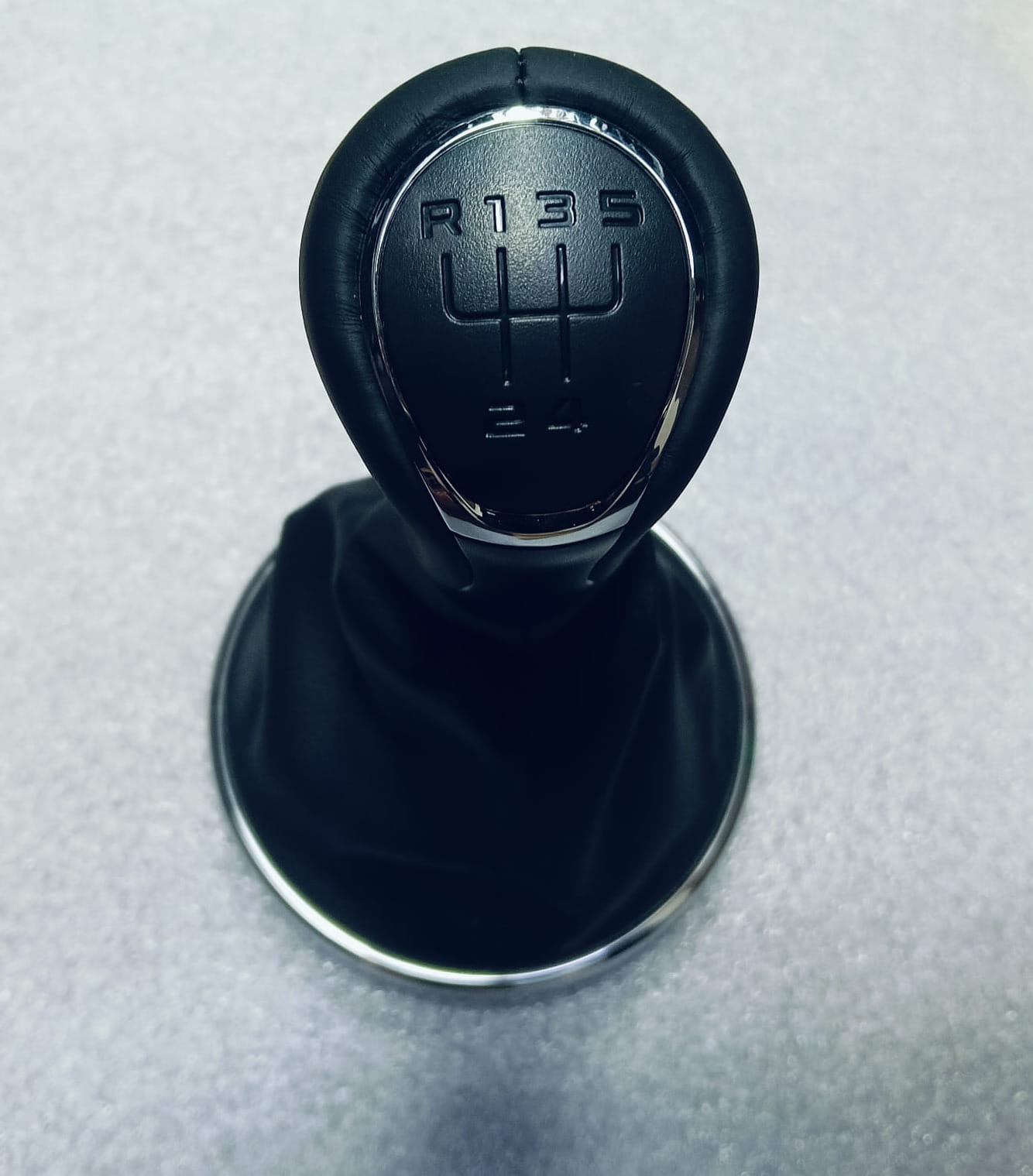 Gałka zmiany biegów z osłoną dźwigni - (sztuczna skóra), kolor: czarny/chrom błyszczący.